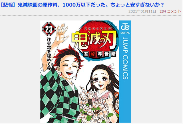 网友替《鬼灭之刃》作者吾峠呼世晴喊冤:320亿日元只能分到1000万?